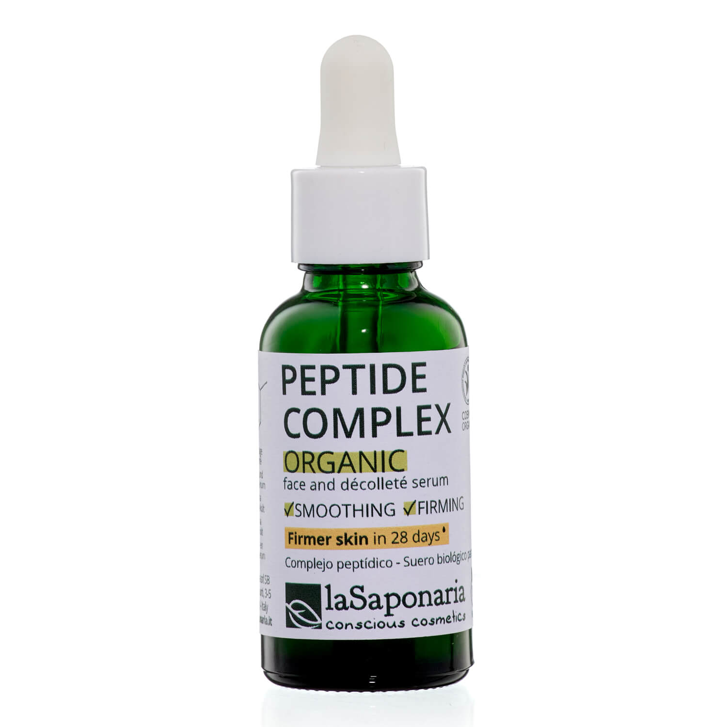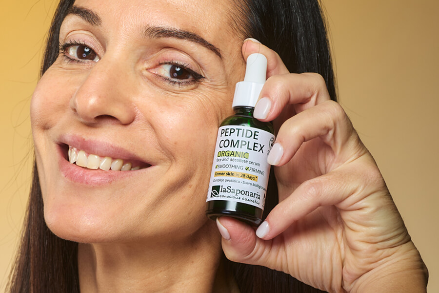 Certificirani organski serum za lice i dekolte s učvršćujućim i tonizirajućim djelovanjem, baziran na peptidnoj tehnologiji (otopina 7%). Peptidi su kratki lanci aminokiselina poznati po svojoj sposobnosti da potaknu proizvodnju kolagena i elastina vraćajući koži tonus i elastičnost. Peptide Complex kombinira djelovanje dvaju funkcionalnih sastojaka: